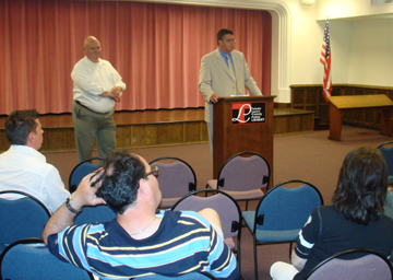 Attorney Chris Finney addresses a group assembled in Toledo on